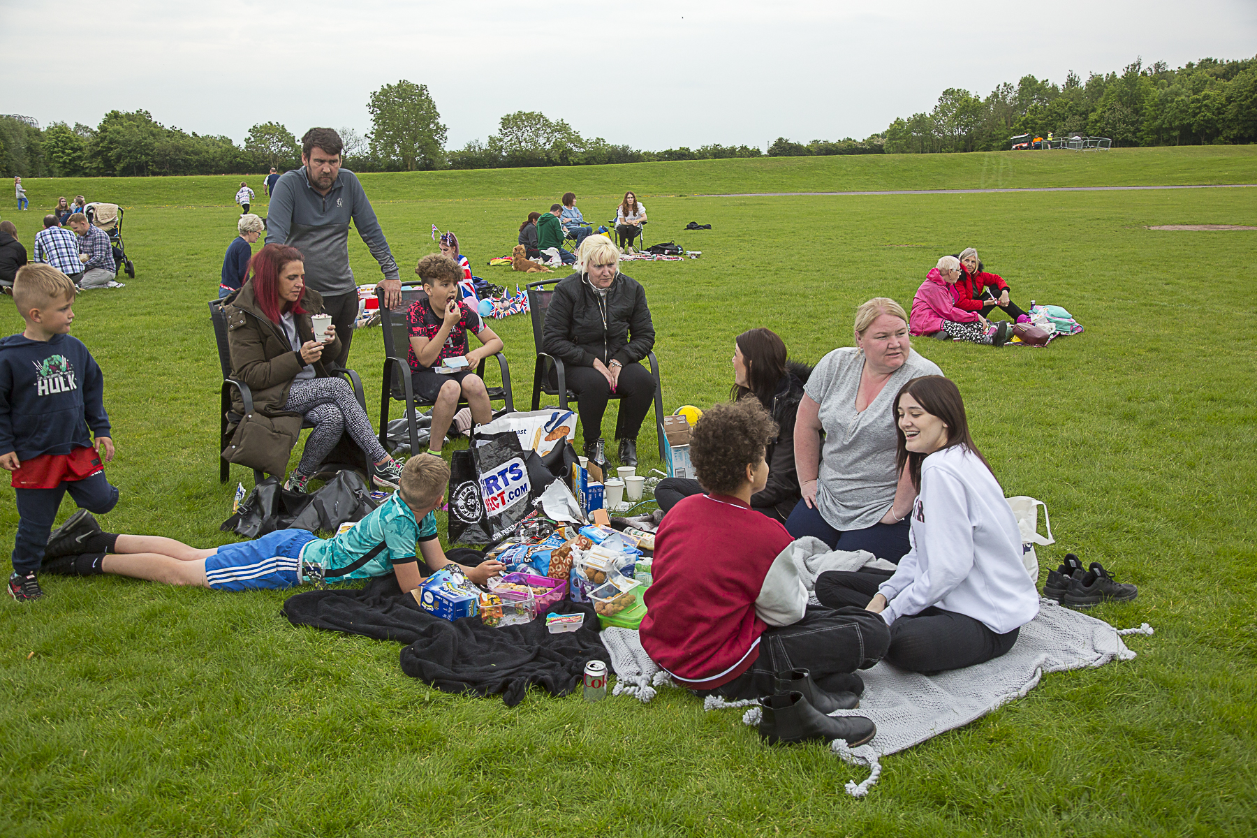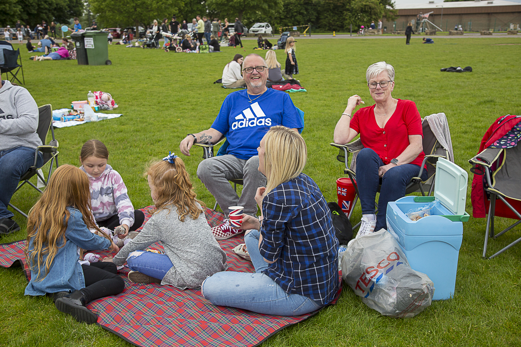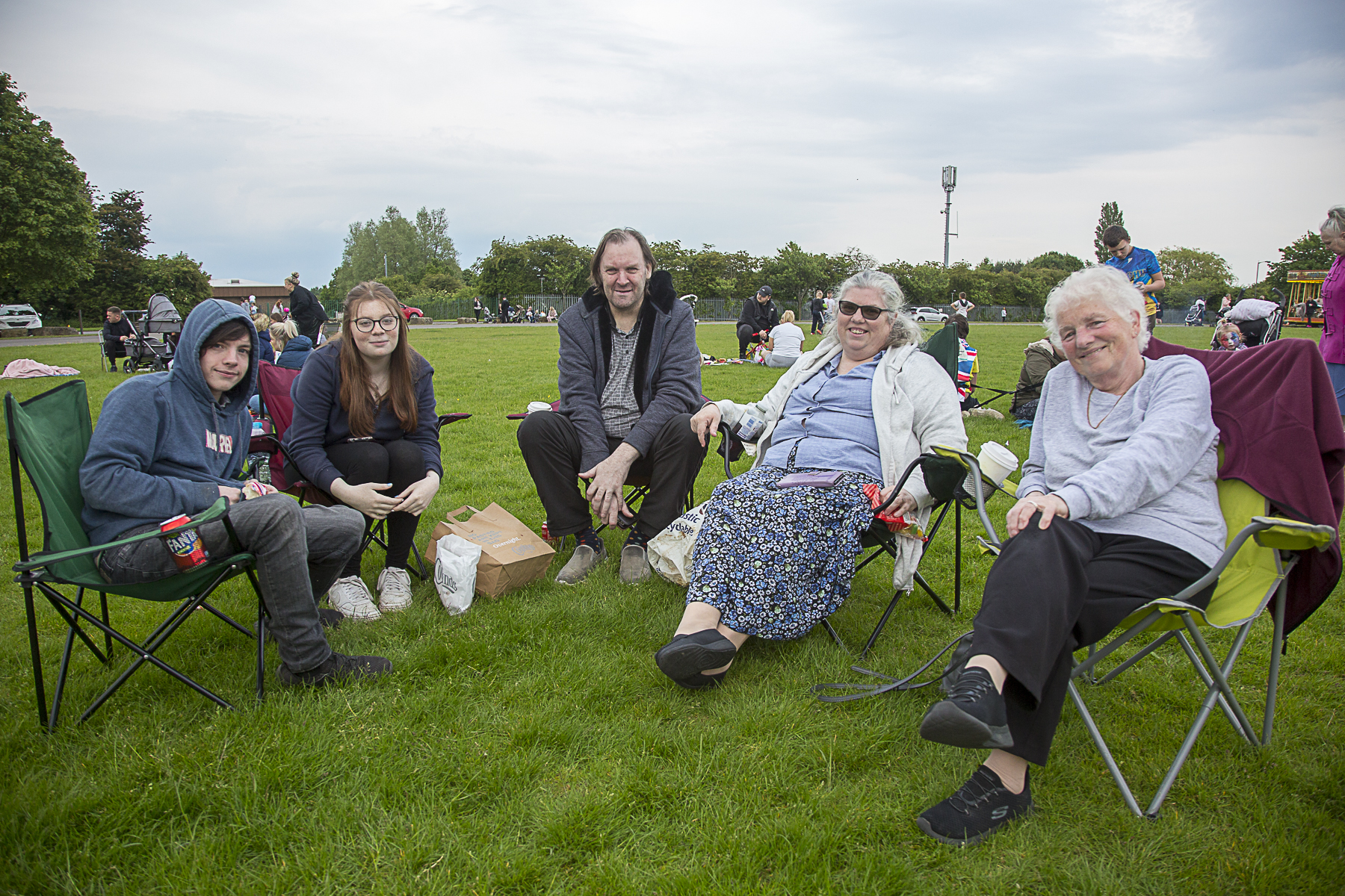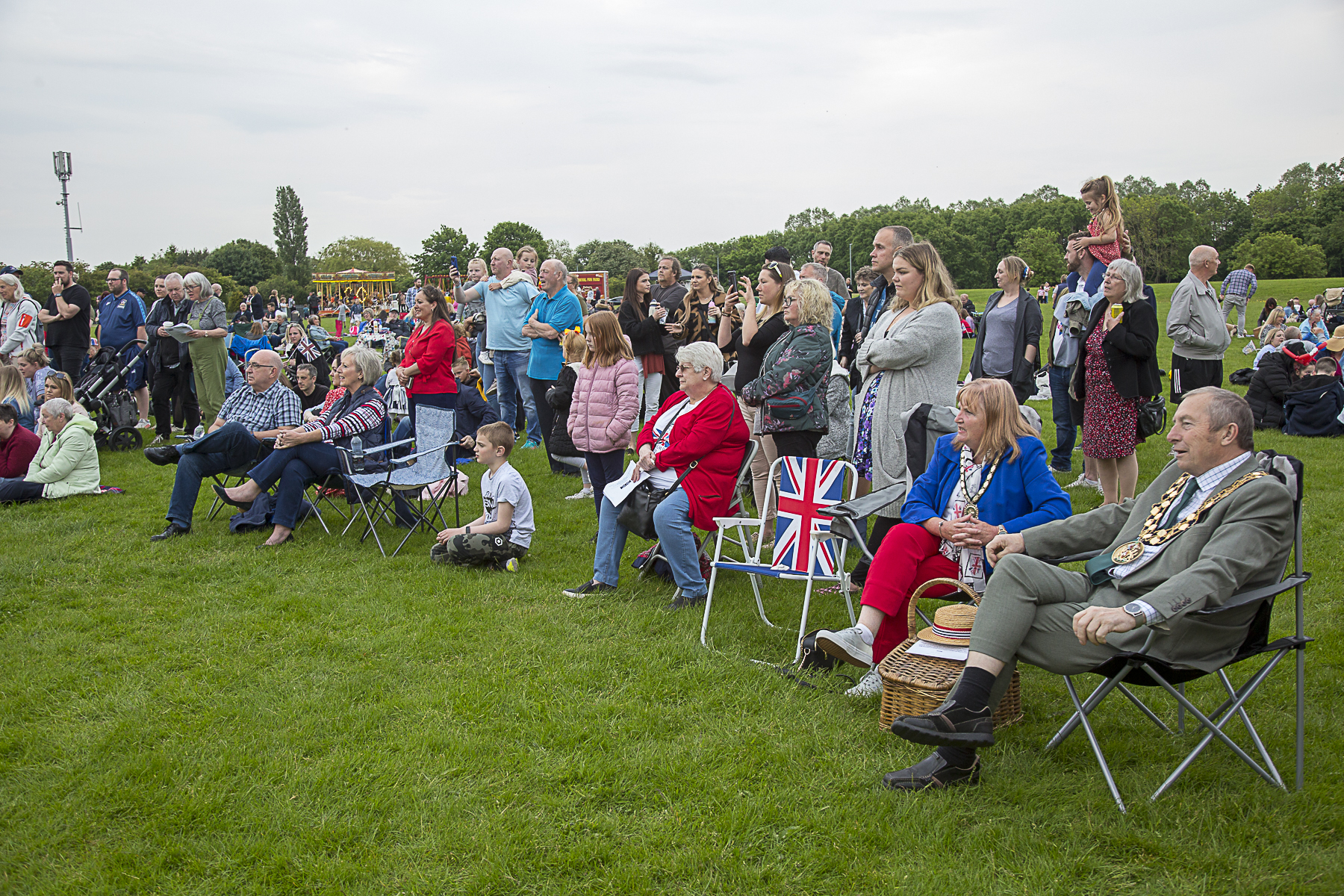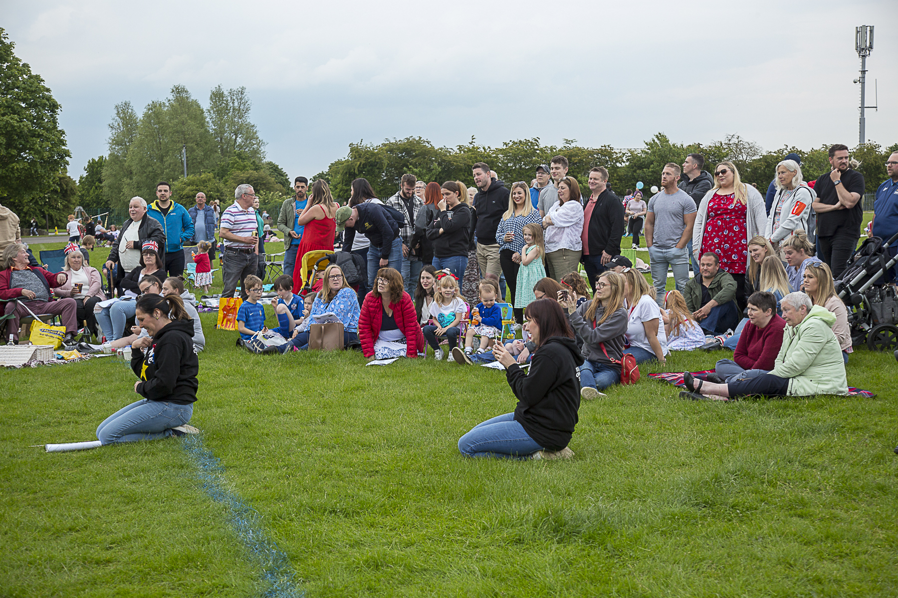 The event, which took place on the Oakleaf Complex sports field, drew a crowd of more than 1000 people to help commemorate this historic moment. Residents brought their picnics, blankets, deckchairs and flags and settled back for an evening of entertainment, kicked off in style by Aycliffe and Brancepeth Brass band playing ‘God Save the Queen’ plus numerous other patriotic tunes. Children from the Shine Choir entertained the audience with their rendition of many popular songs, before local singer Jenna Highfield took to the stage to perform more classic hits, with enthusiastic accompaniment from all present.