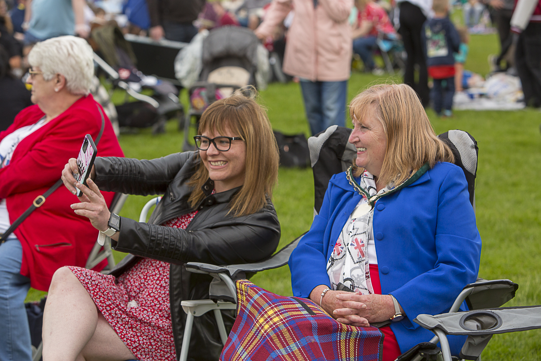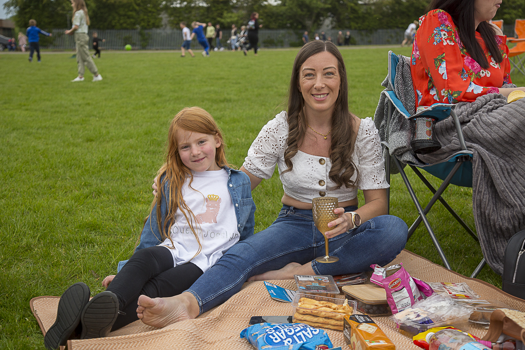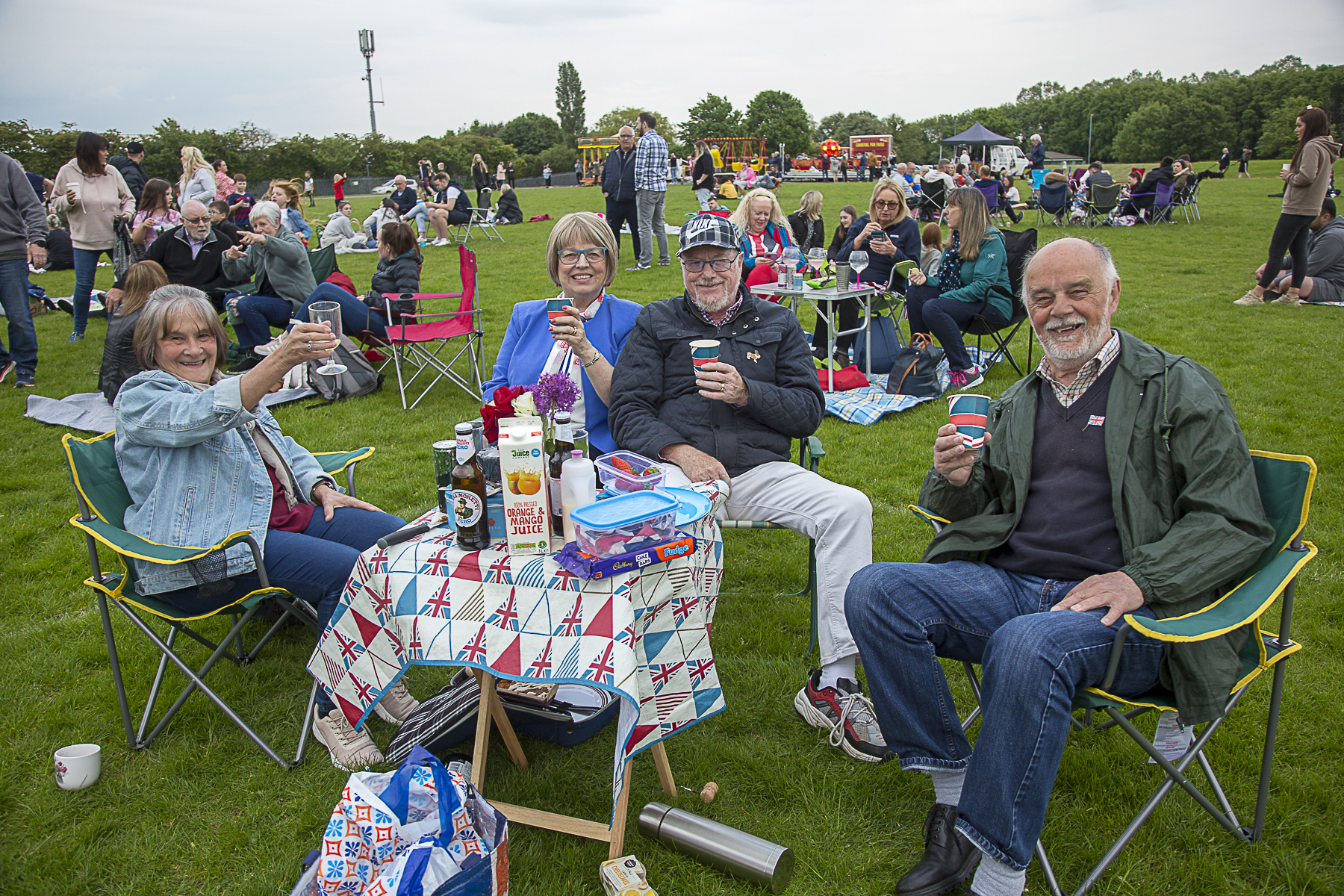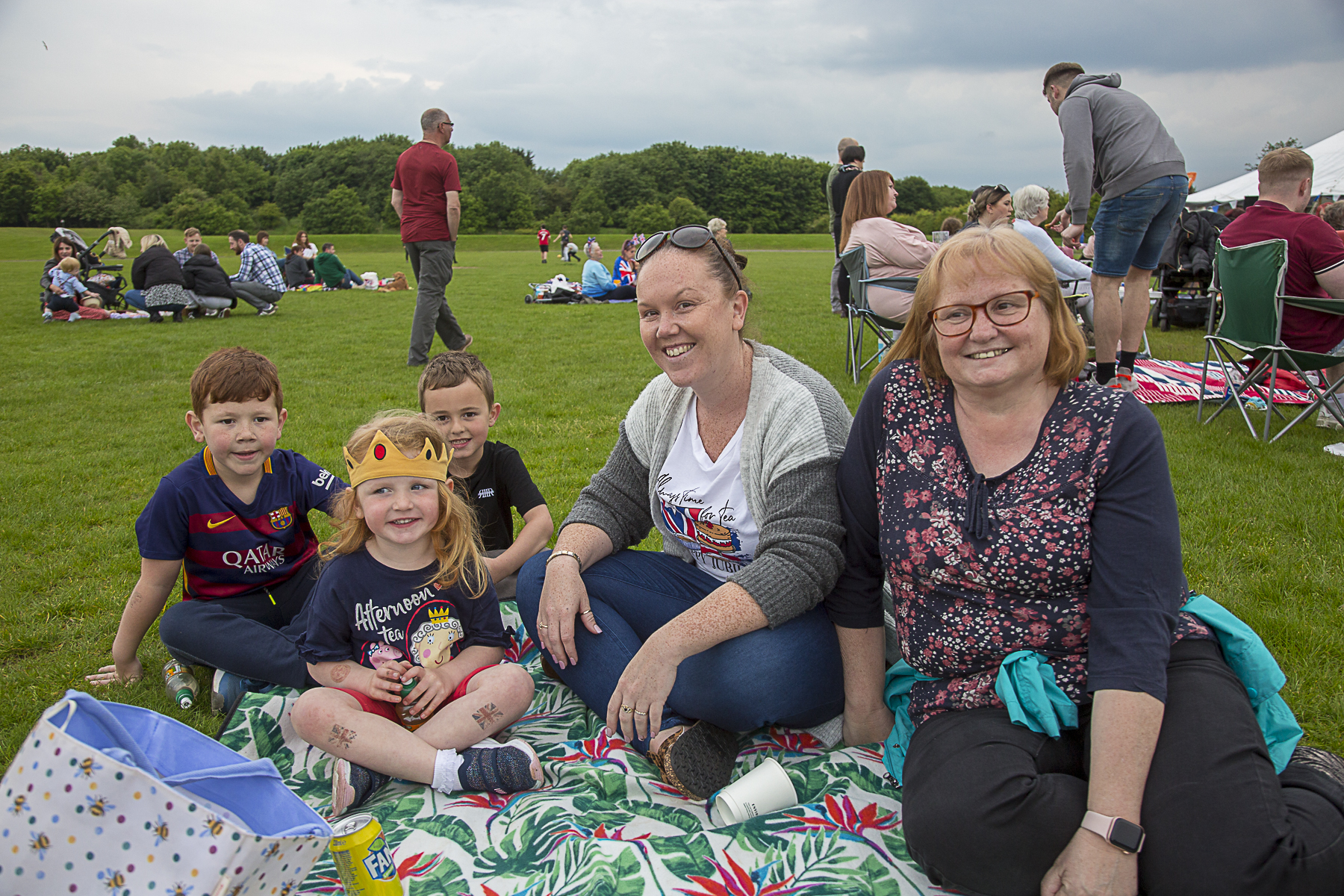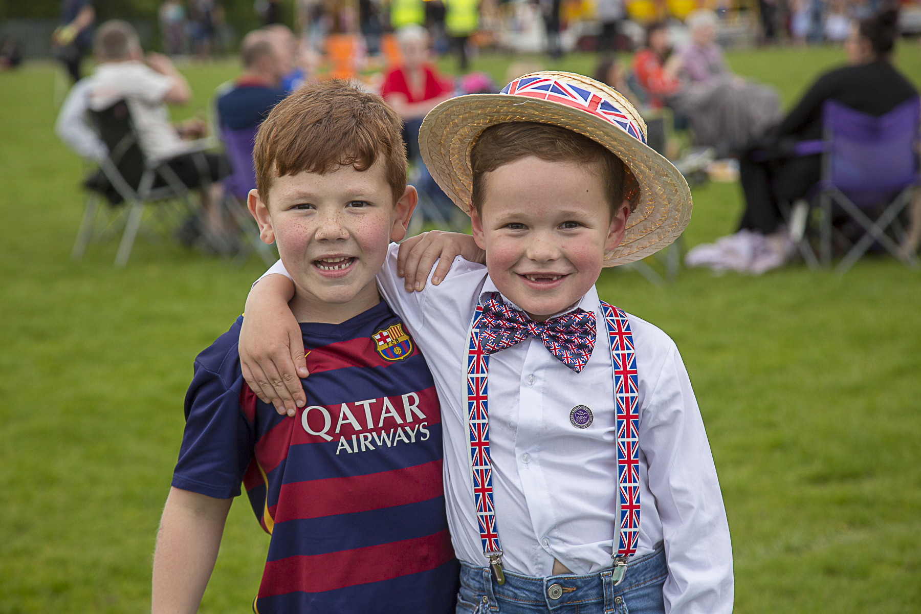 The event, which took place on the Oakleaf Complex sports field, drew a crowd of more than 1000 people to help commemorate this historic moment. Residents brought their picnics, blankets, deckchairs and flags and settled back for an evening of entertainment, kicked off in style by Aycliffe and Brancepeth Brass band playing ‘God Save the Queen’ plus numerous other patriotic tunes. Children from the Shine Choir entertained the audience with their rendition of many popular songs, before local singer Jenna Highfield took to the stage to perform more classic hits, with enthusiastic accompaniment from all present.
