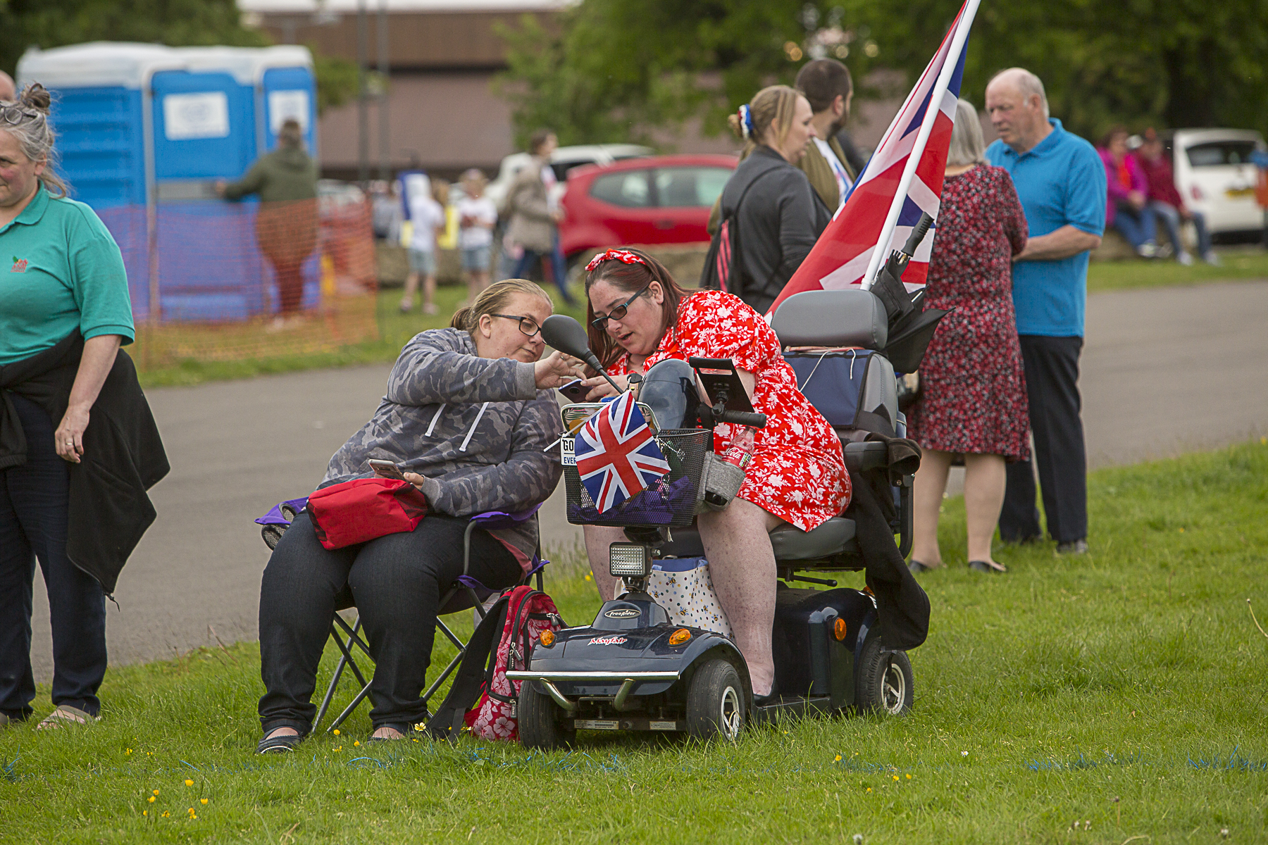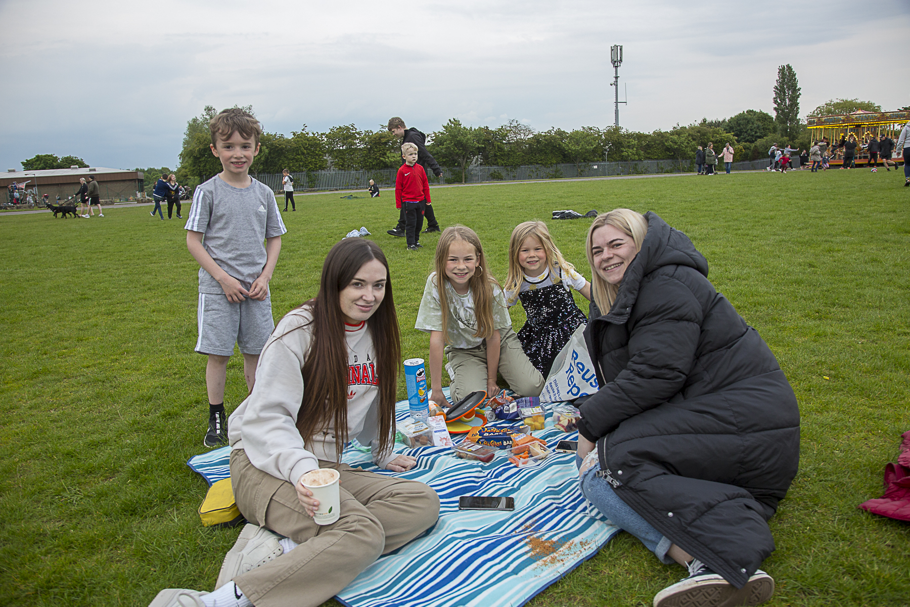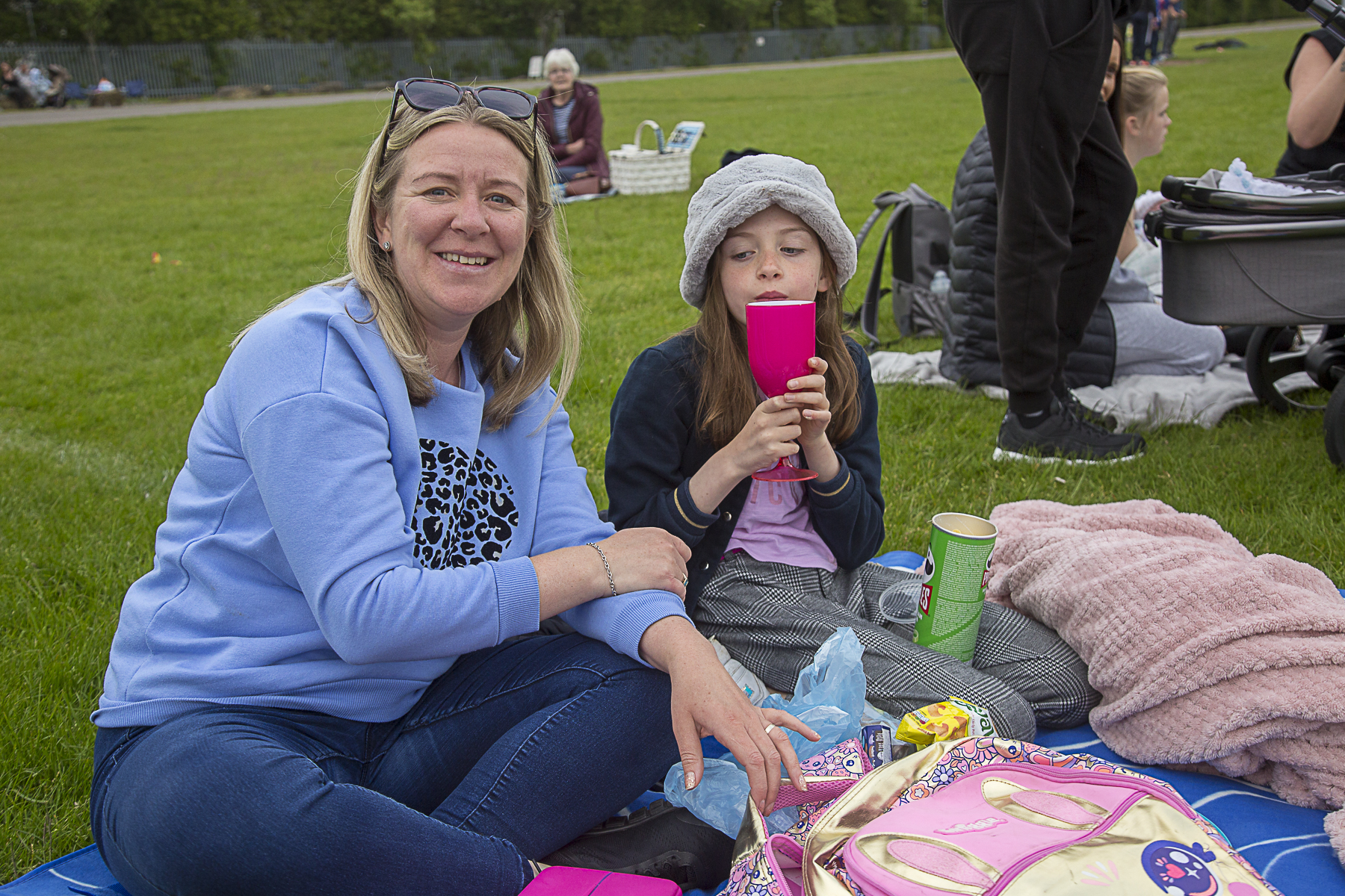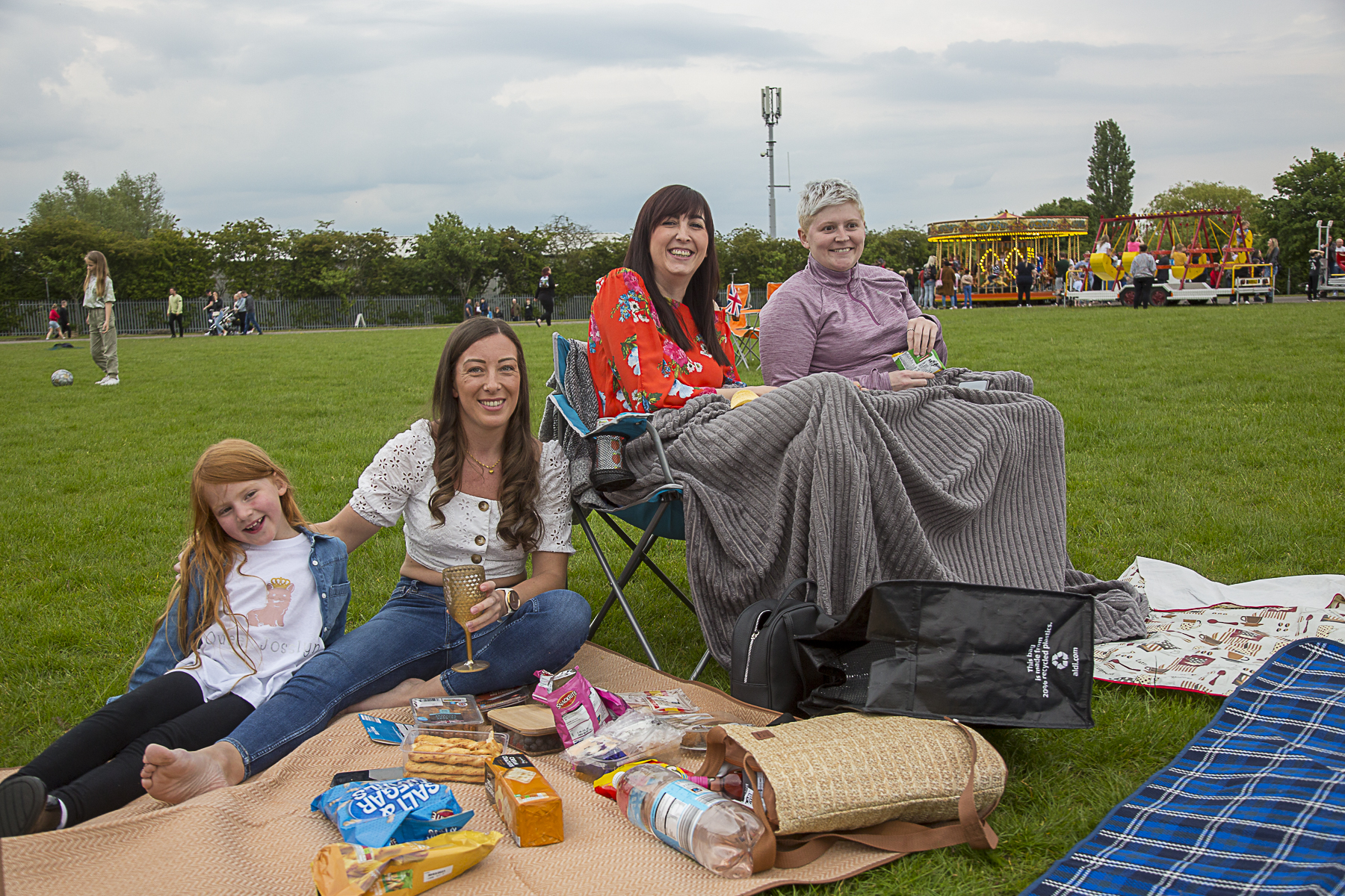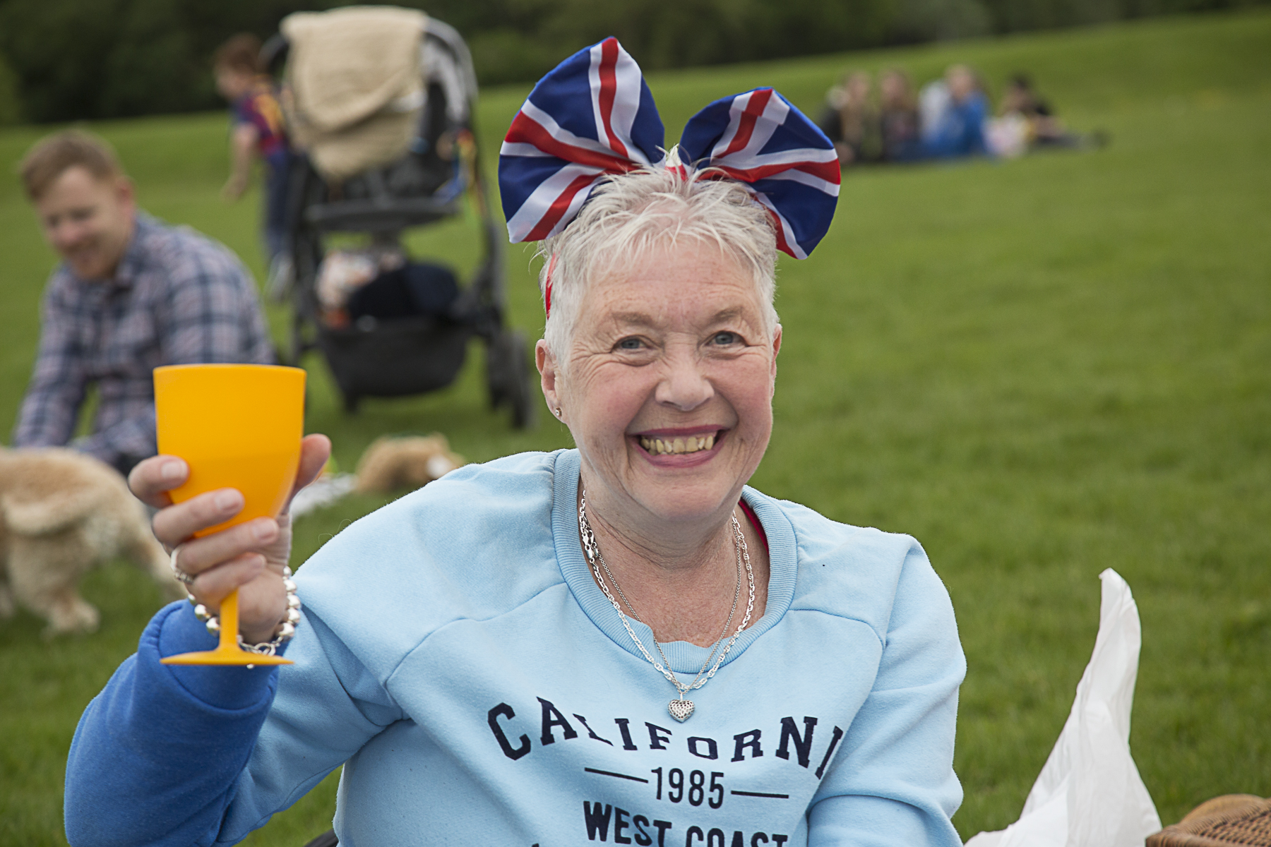 The event, which took place on the Oakleaf Complex sports field, drew a crowd of more than 1000 people to help commemorate this historic moment. Residents brought their picnics, blankets, deckchairs and flags and settled back for an evening of entertainment, kicked off in style by Aycliffe and Brancepeth Brass band playing ‘God Save the Queen’ plus numerous other patriotic tunes. Children from the Shine Choir entertained the audience with their rendition of many popular songs, before local singer Jenna Highfield took to the stage to perform more classic hits, with enthusiastic accompaniment from all present.