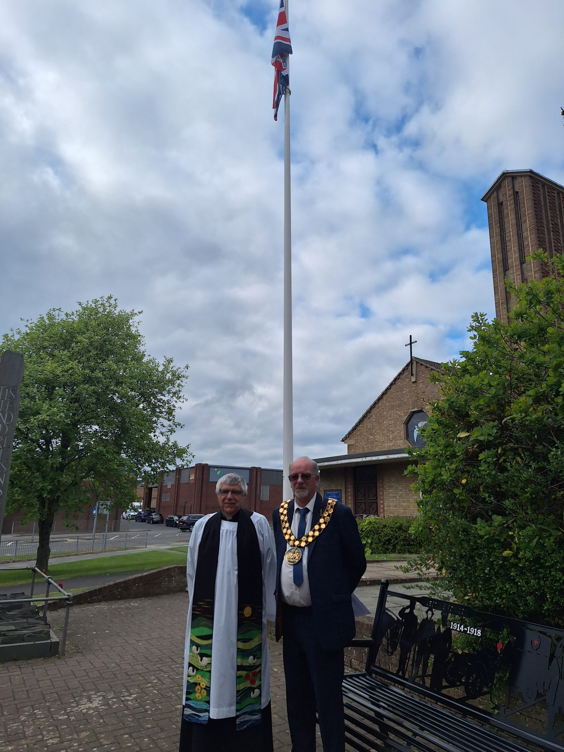 On Thursday 8th May the Mayor of Great Aycliffe John Clark attended a church blessing at St Clare’s Church which was given by Rev John Musson.